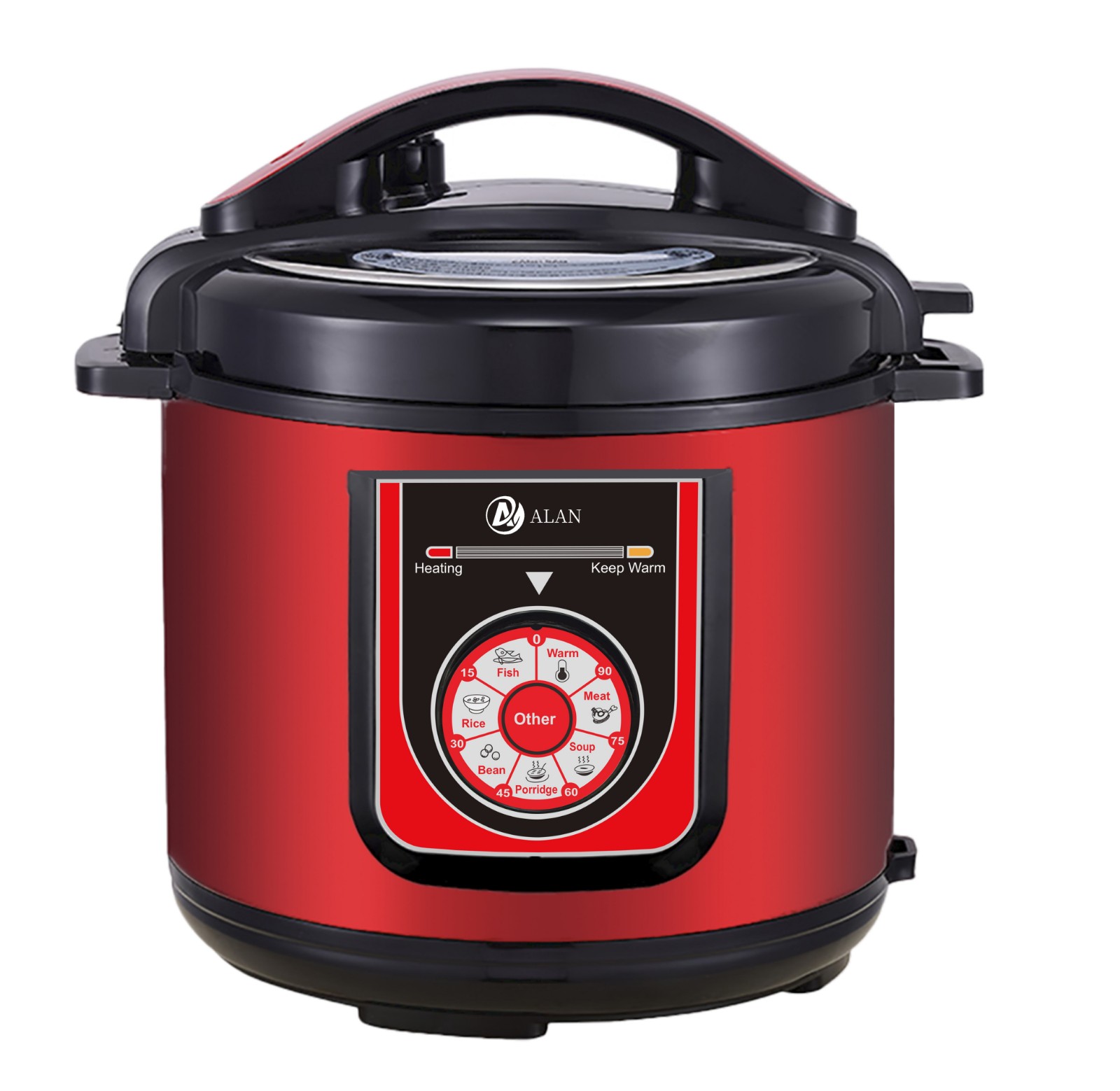 AL-SK08 4/5/6/8/10/12L SS Housing EPC Knob Control ◆ Voltage/Hz:220V~240V,50/60Hz ◆ Power:800/900/1000/1200/1600/1600W,0-70KPA ◆ Outer Housing:SS#410(Color Choice: Golden,Silver,Red,Purple,etc) ◆ Middle Housing:Cold Board ◆ Heater:380/430/430/630/1000/1000g ◆ Lid:SS#201 ◆ Inner Pot:No-Stick Aluminium Pot ◆ 3 Cores 1.0Meter Power Cable with Plug ◆ Accessories: Measure Cup, Spoon |