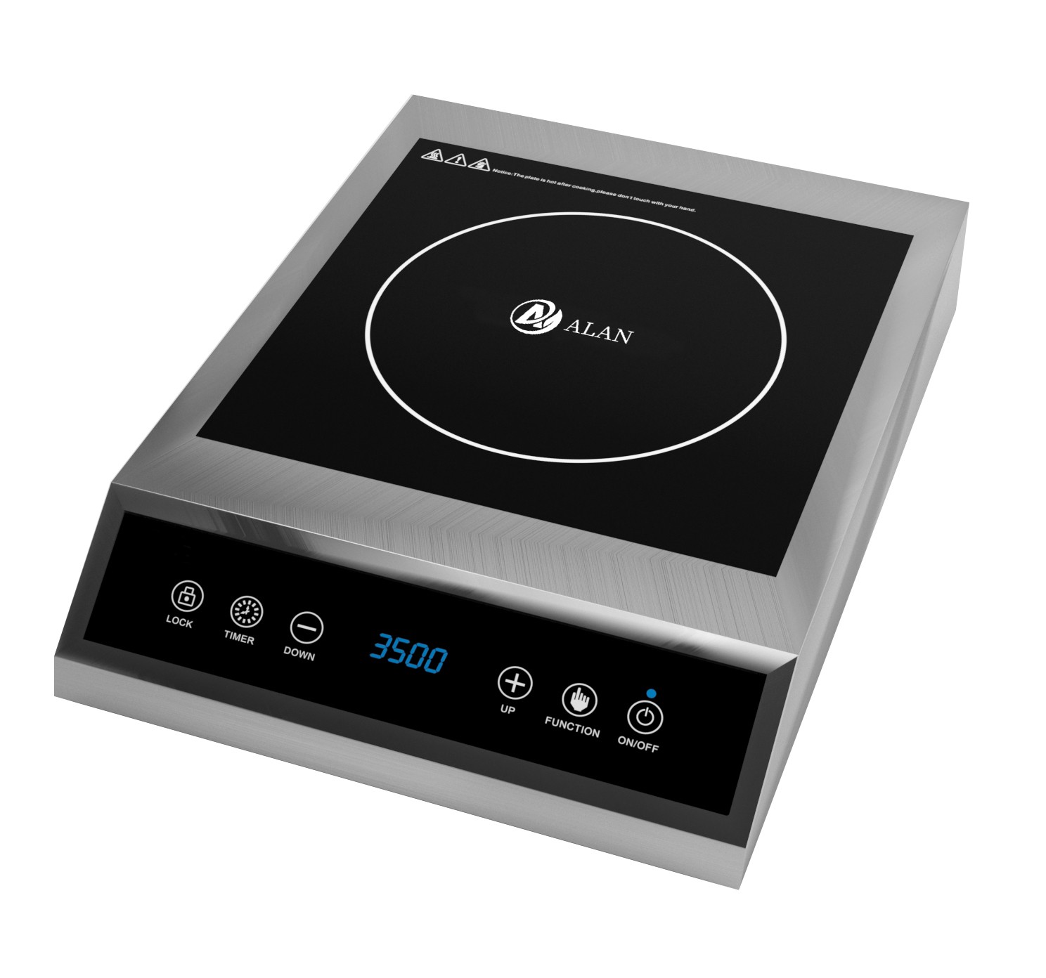 AL-3500S Sensor Touch Commercial Induction Cooker ◆ Rating Power:3500W ◆ voltage;220-240V/ 50-60Hz ◆ Grade A black crystal plate ◆ 4 digital LED display with multi-function ◆ 8 level of temperature and power ◆ Child Safety Lock ◆ 9 Intelligent Cooking Function ◆ Timer (0-240 minutes) and Preset (24 hours) ◆ Temperature Range 80℃-280℃ ◆ Glass Size(mm):300*300 ◆ Unit Size(mm): 320*420*105 |