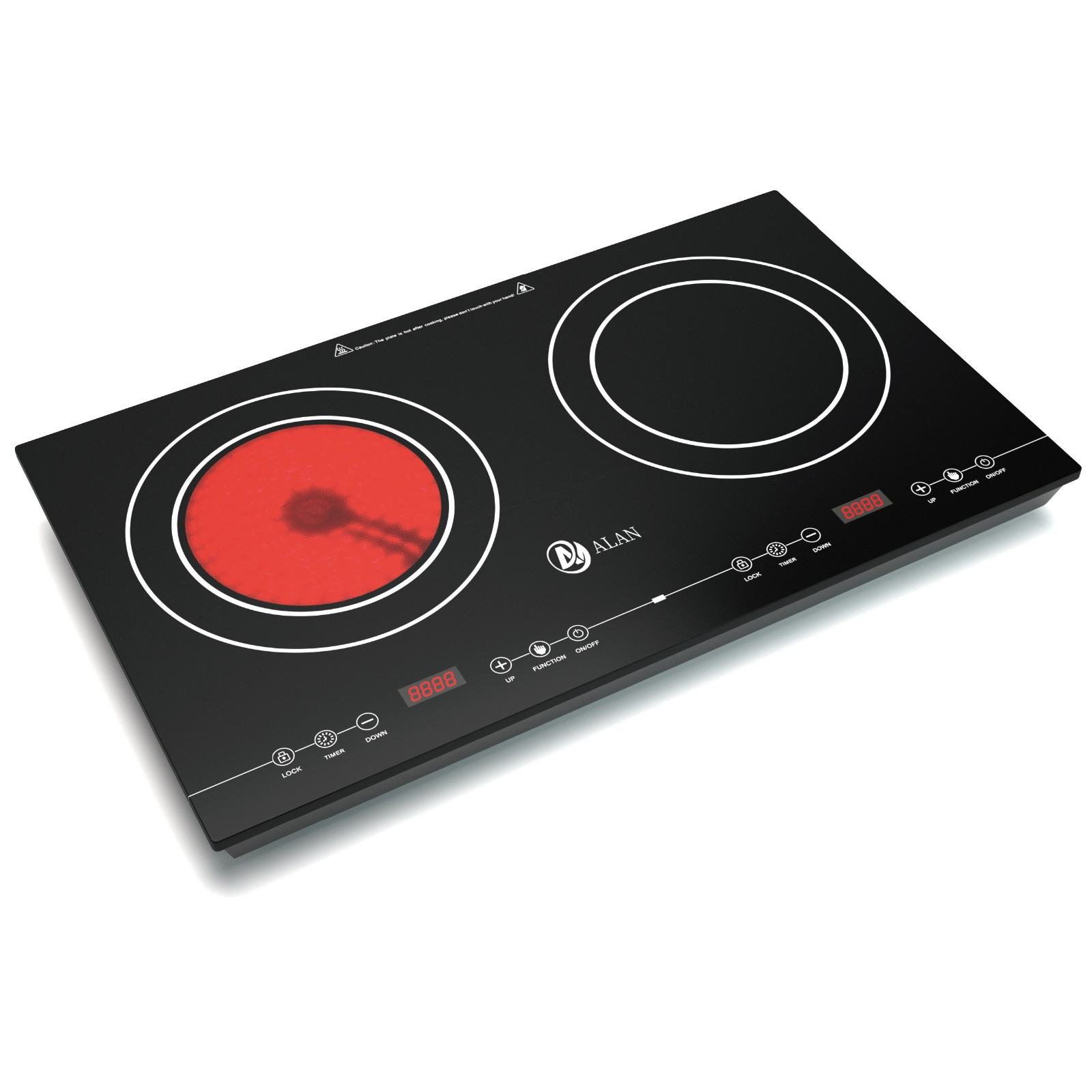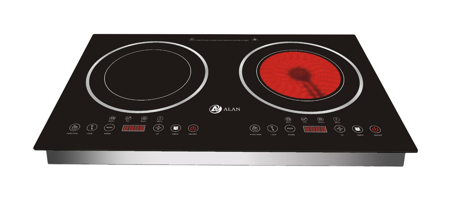 AL-DCF06 Double Burner Induction+Infrared Cooker ◆ Rating Power:2000W+2000W ◆ voltage;220-240V/ 50-60Hz ◆ Grade A black crystal plate ◆ 4 digital LED display with multi-function ◆ 8 level of temperature and power ◆ Child Safety Lock ◆ 8 Intelligent Cooking Function ◆ Timer (0-240 minutes) and Preset (24 hours) ◆ Temperature Range 80℃-280℃ ◆ Glass Size(mm):660*390 ◆ Unit Size(mm): 660*390*65 |