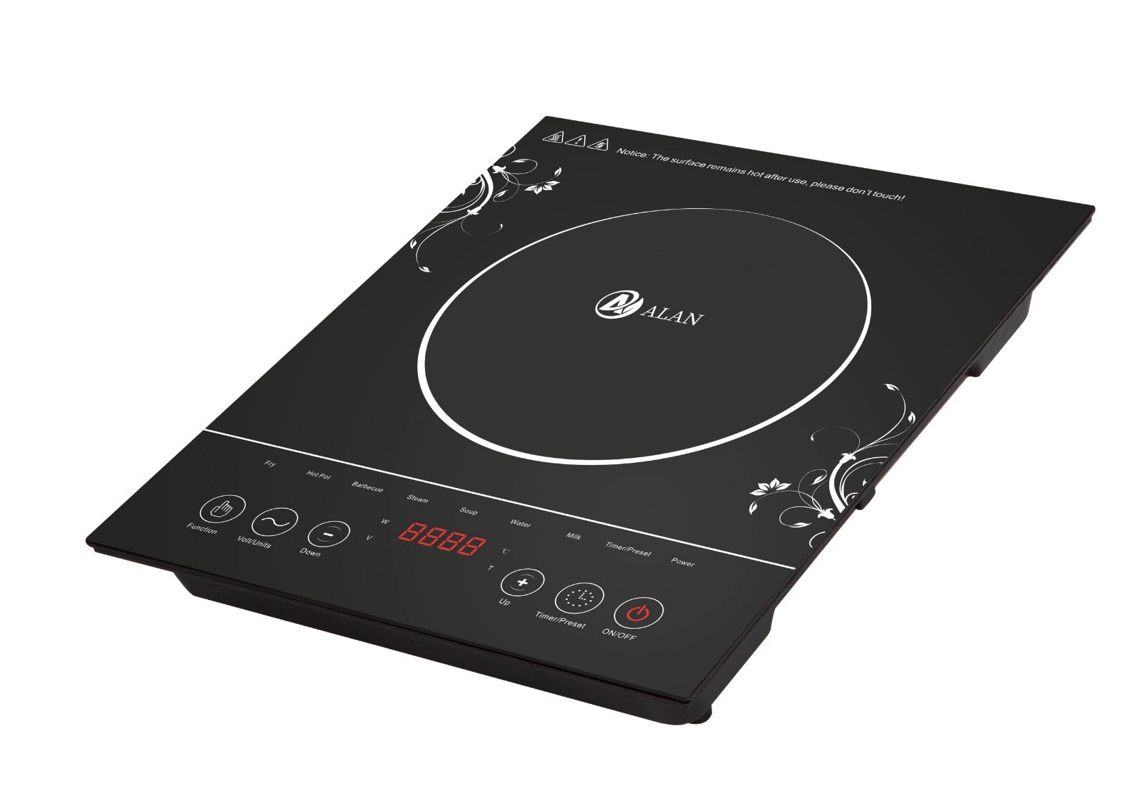 AL-A62 Sensor Touch Induction Cooker ◆ Rating Power:2000W ◆ voltage;220-240V/ 50-60Hz ◆ Grade A black crystal plate ◆ 4 digital LED display with multi-function ◆ 8 level of temperature and power ◆ Child Safety Lock ◆ 8 Intelligent Cooking Function ◆ Timer (0-240 minutes) and Preset (24 hours) ◆ Temperature Range 80℃-280℃ ◆ Glass Size(mm):280*330 ◆ Unit Size(mm): 280*330*65 |