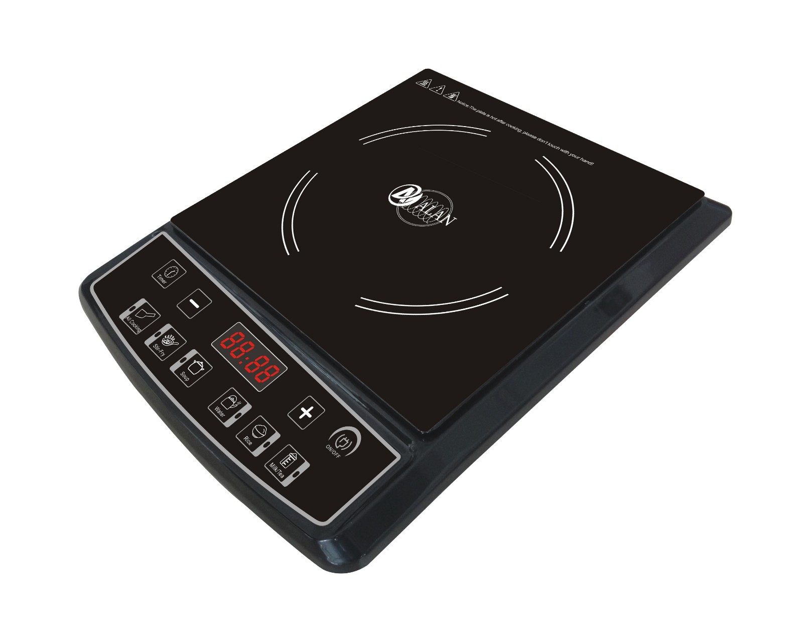 AL-A57 Pushbutton Induction Cooker ◆ Rating Power:2000W ◆ voltage;220-240V/ 50-60Hz ◆ Ceramic plate ◆ 4 digital LED display with multi-function ◆ 8 level of temperature and power ◆ Child Safety Lock ◆ 8 Intelligent Cooking Function ◆ Timer (0-240 minutes) and Preset (24 hours) ◆ Temperature Range 80℃-280℃ ◆ Glass Size(mm):250*250 ◆ Unit Size(mm): 280*340*62 |
