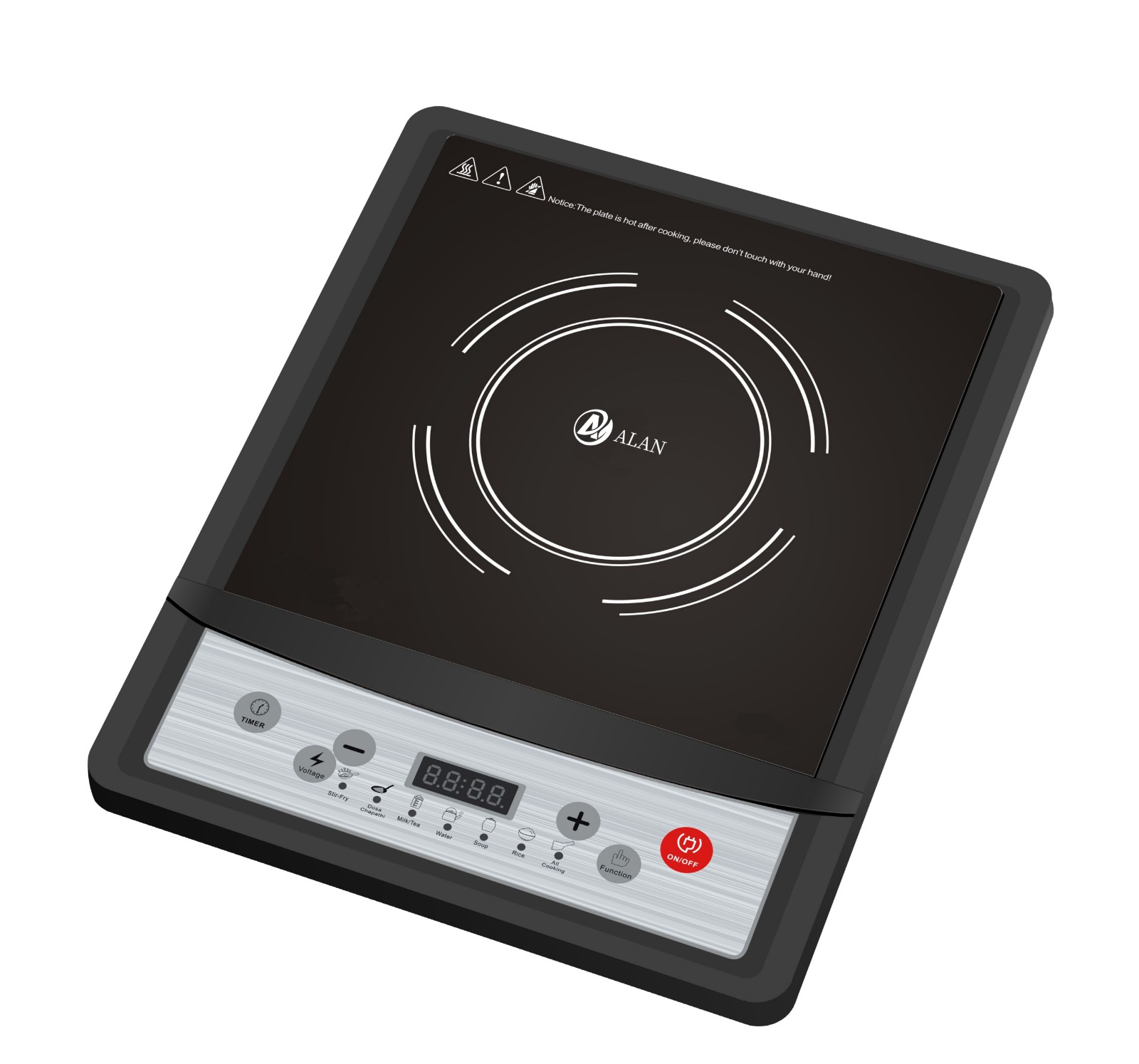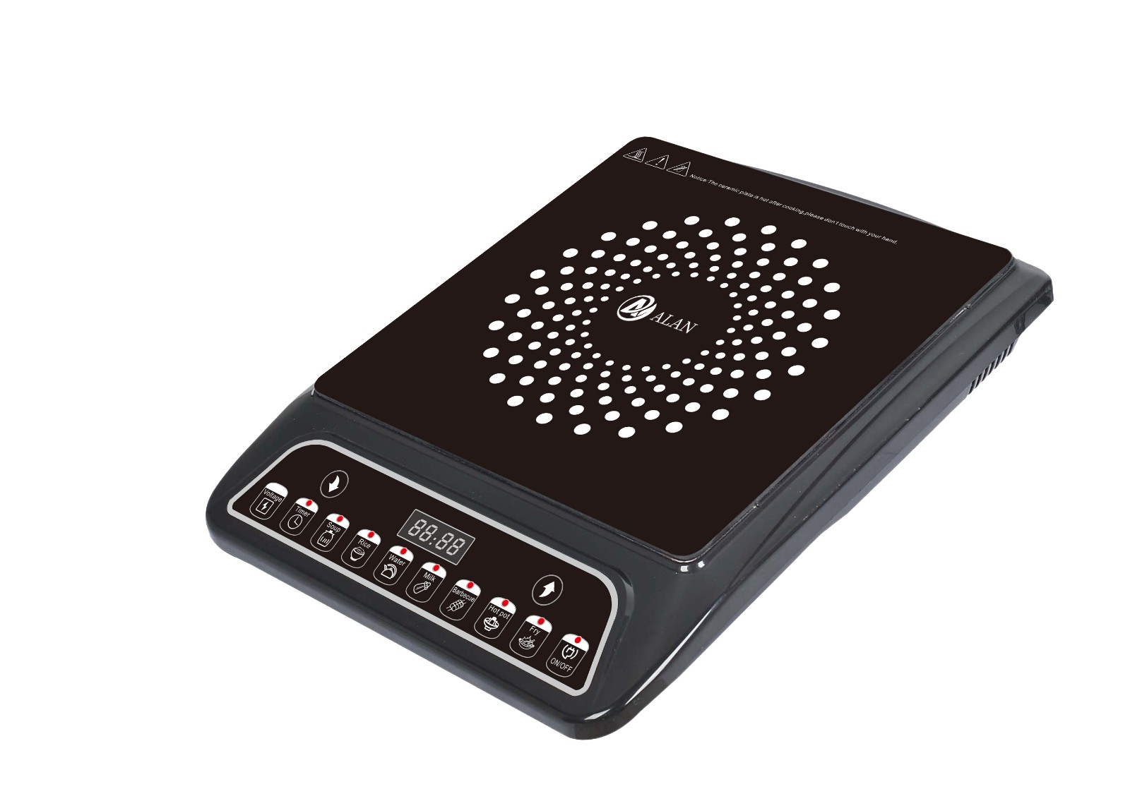 AL-A79 Sensor Touch Induction Cooker ◆ Rating Power:2200W ◆ voltage;220-240V/ 50-60Hz ◆ Grade A black crystal plate ◆ 4 digital LED display with multi-function ◆ 8 level of temperature and power ◆ Child Safety Lock ◆ 8 Intelligent Cooking Function ◆ Timer (0-240 minutes) and Preset (24 hours) ◆ Temperature Range 80℃-280℃ ◆ Glass Size(mm): 310*380 ◆ Unit Size(mm): 310*380*65 |