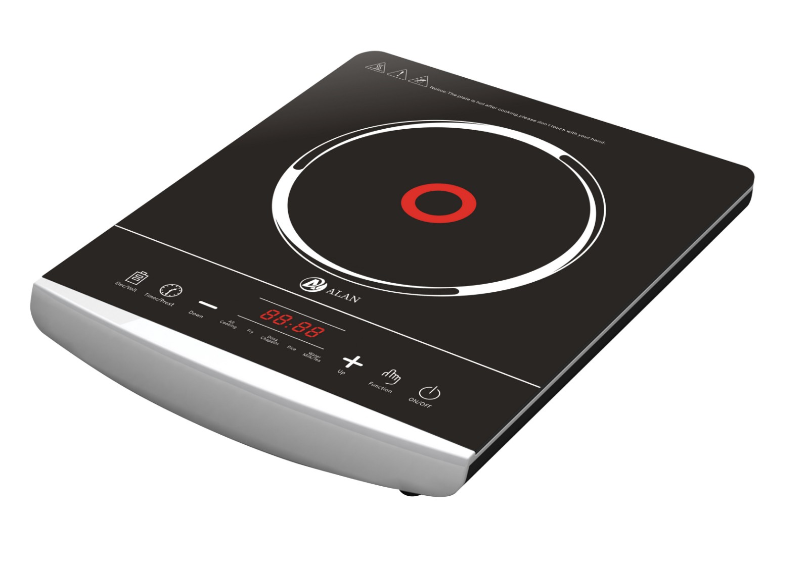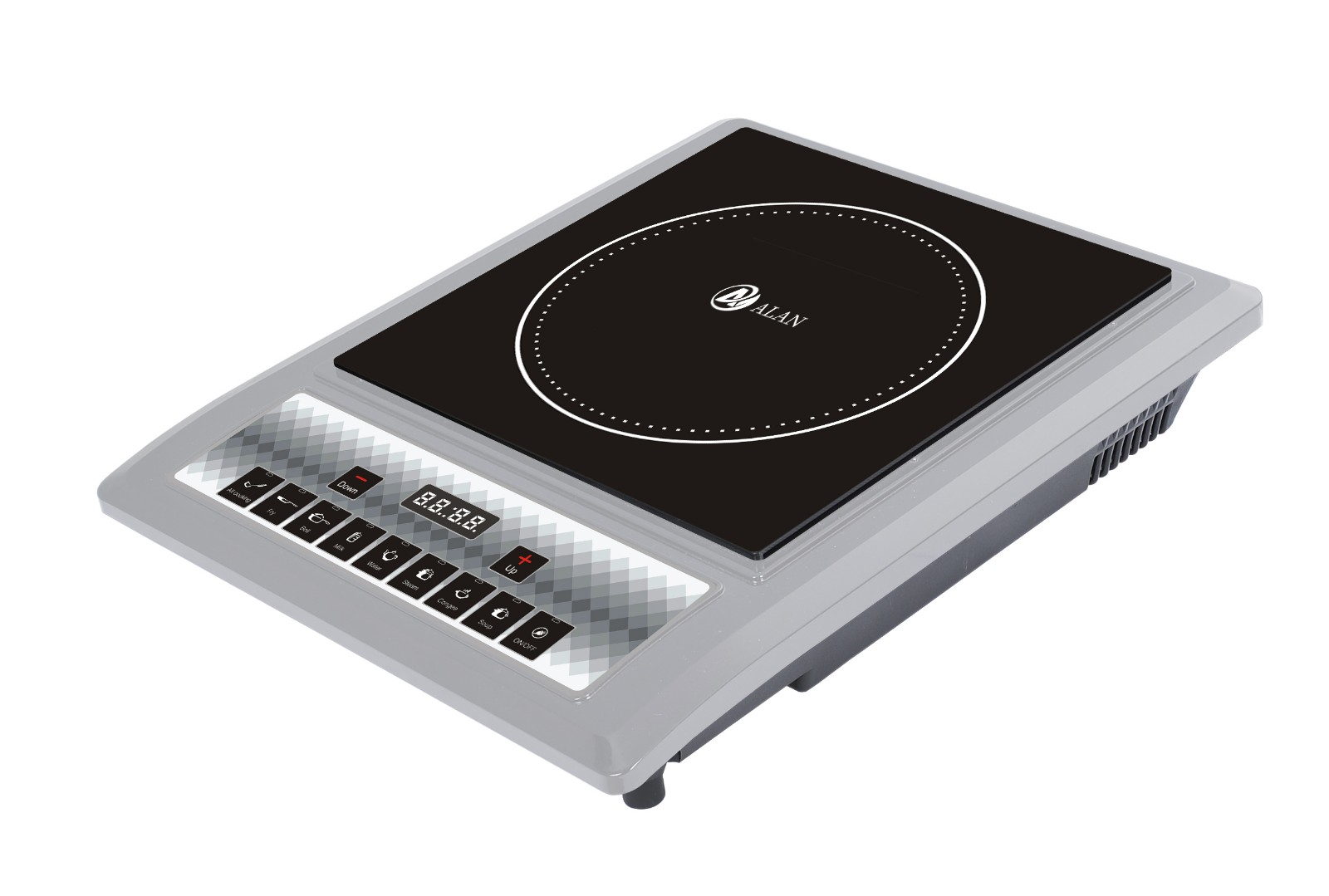 AL-A22 Pushbutton Induction Cooker ◆ Rating Power:2000W ◆ voltage;220-240V/ 50-60Hz ◆ Ceramic plate ◆ 4 digital LED display with multi-function ◆ 8 level of temperature and power ◆ Child Safety Lock ◆ 8 Intelligent Cooking Function ◆ Timer (0-240 minutes) and Preset (24 hours) ◆ Temperature Range 80℃-280℃ ◆ Glass Size(mm):250*250 ◆ Unit Size(mm): 280*340*62 |