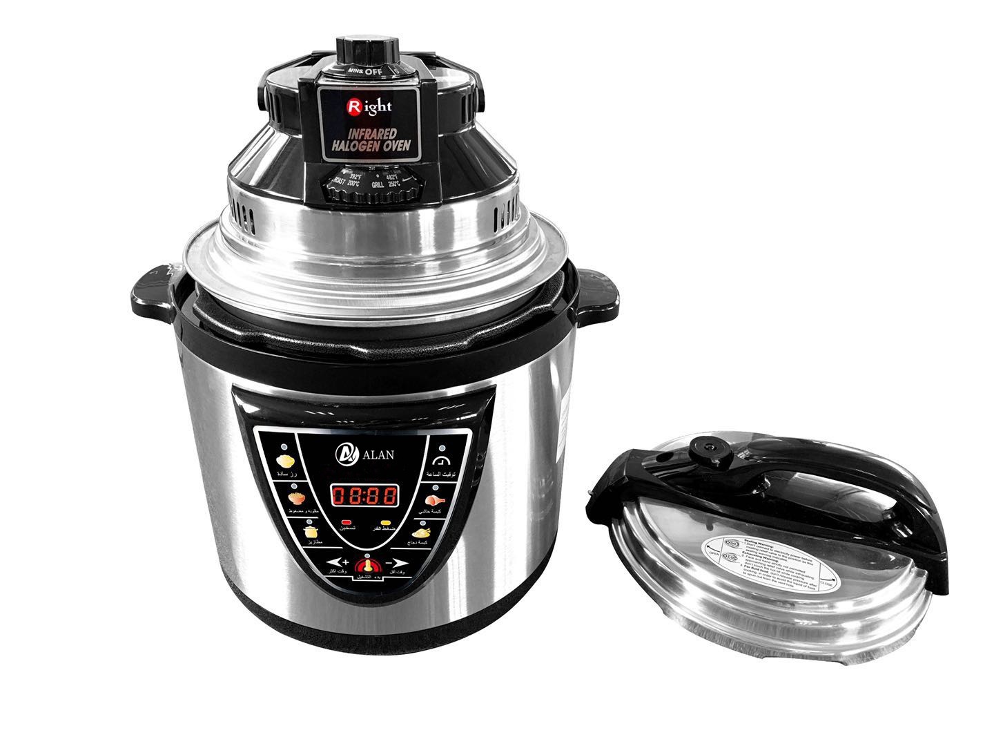 AL-S05AF 4/5/6/8/10/12L Microcomputer Electric Pressure Cooker with Air Fryer ◆ Voltage/Hz:220V~240V,50/60Hz ◆ Power:800/900/1000/1200/1600/1600W,0-70KPA ◆ Outer Housing:SS#201(Color Choice: Golden,Silver,Red,Purple,etc) ◆ Middle Housing:Cold Board ◆ Heater:380/430/430/660/1000/1000g ◆ Lid:SS#201 ◆ Inner Pot:Single Painting Aluminium Pot ◆ 3*0.75*1.0M(4/6/8L) & 3*1*1.0M(10/12L)Pure Copper Cable with VDE Plug ◆ Accessories: Measure Cup, Spoon |