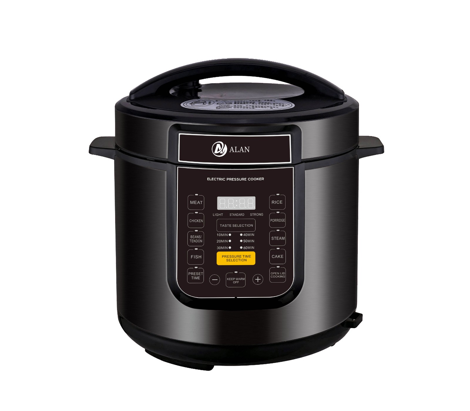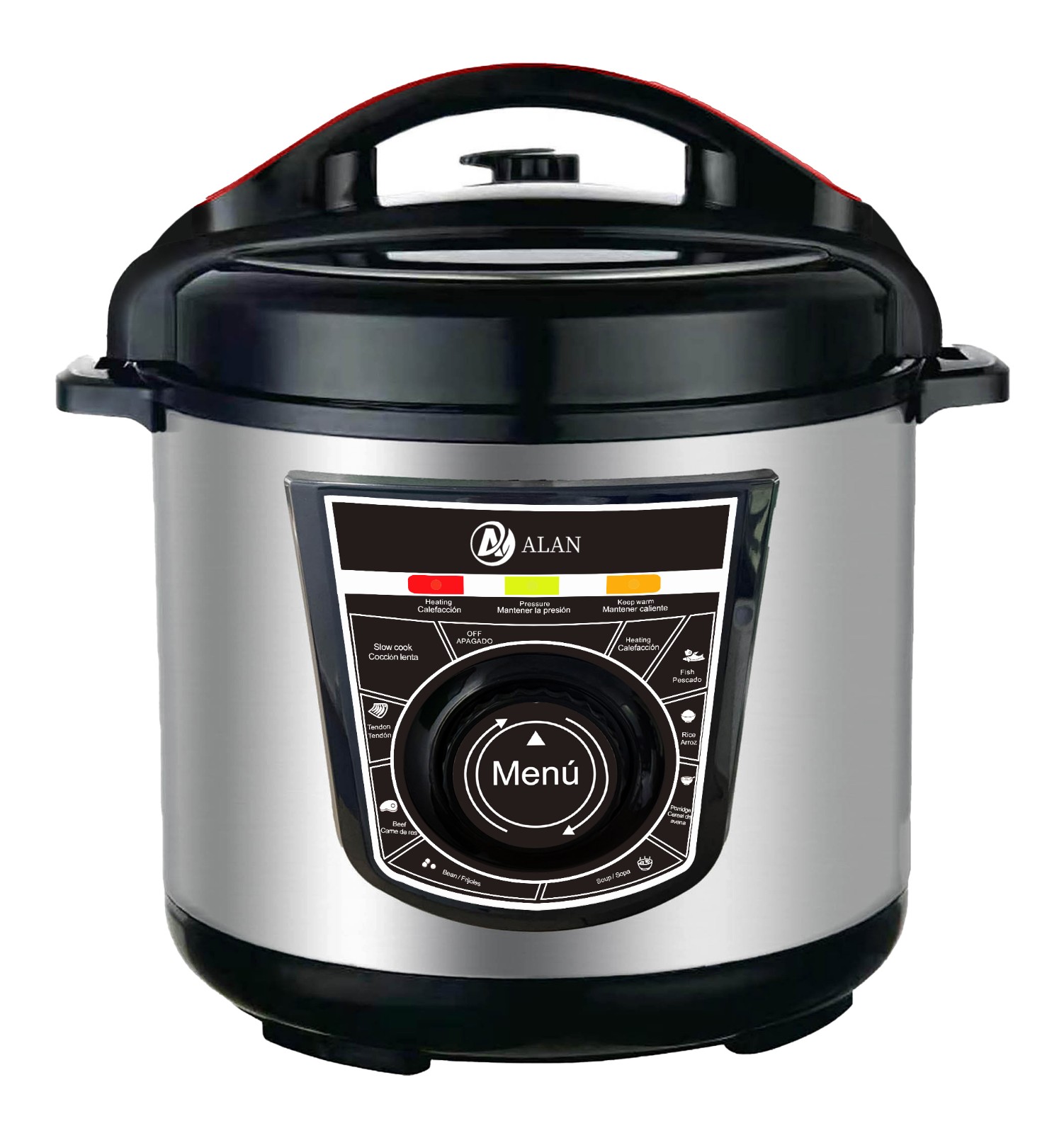AL-SK04 Amazon Hot Sale Model!!! 4/5/6/8/10/12L Electric Pressure Cooker with Knob Control ◆ Voltage/Hz:100-120V and 220V~240V,50/60Hz ◆ Power:800/900/1000/1200/1600/1600W,0-70KPA ◆ Outer Housing:SS#201(Color Choice: Golden,Silver,Red,Purple,etc) ◆ Middle Housing:Cold Board ◆ Heater:380/430/430/660/1000/1000g ◆ Lid:SS#201 ◆ Inner Pot:Non-Stick Aluminium Pot ◆ 3*0.75*1.0M(4/6/8L) & 3*1*1.0M(10/12L)Pure Copper Cable with Plug ◆ Accessories: Measure Cup, Spoon |