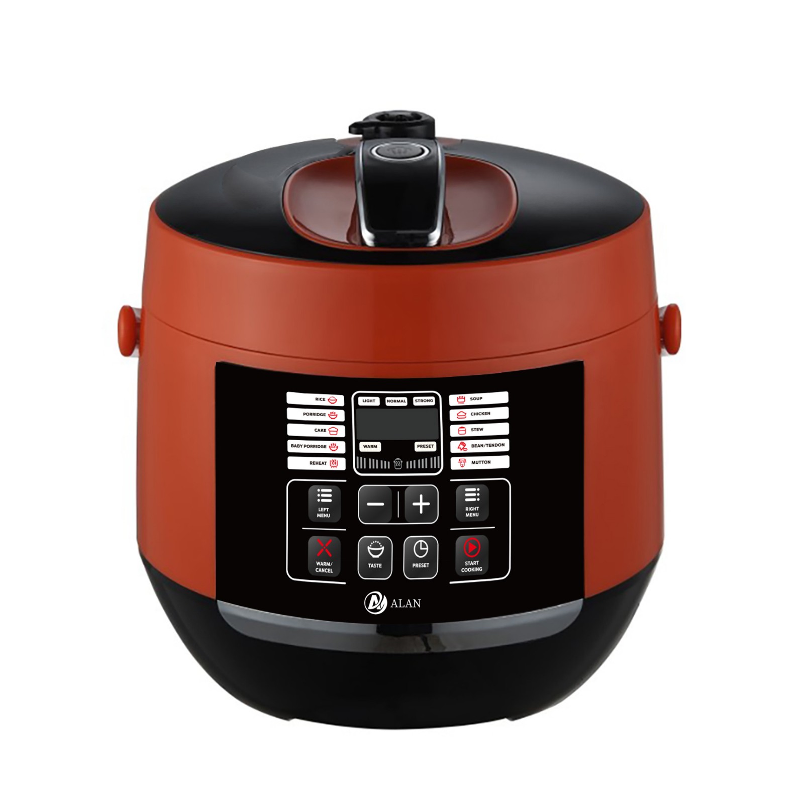 AL-S08 5/6L Microcomputer Electric Pressure Cooker ◆ Voltage/Hz:220V~240V,50/60Hz ◆ Power:900/1000W,0-70KPA ◆ Outer Housing:SS#410(Color Choice: Golden,Silver,Red,Purple,etc) ◆ Middle Housing:Cold Board ◆ Heater:430g ◆ Lid:SS#201 ◆ Inner Pot:Non-Stick Aluminium Pot ◆ 3*0.75*1.0M Copper Cable with VDE Plug ◆ Accessories: Measure Cup, Spoon |