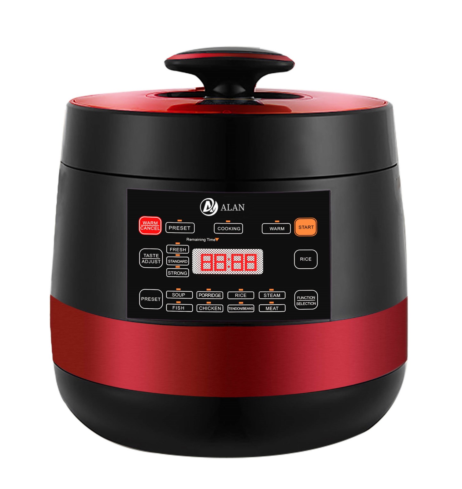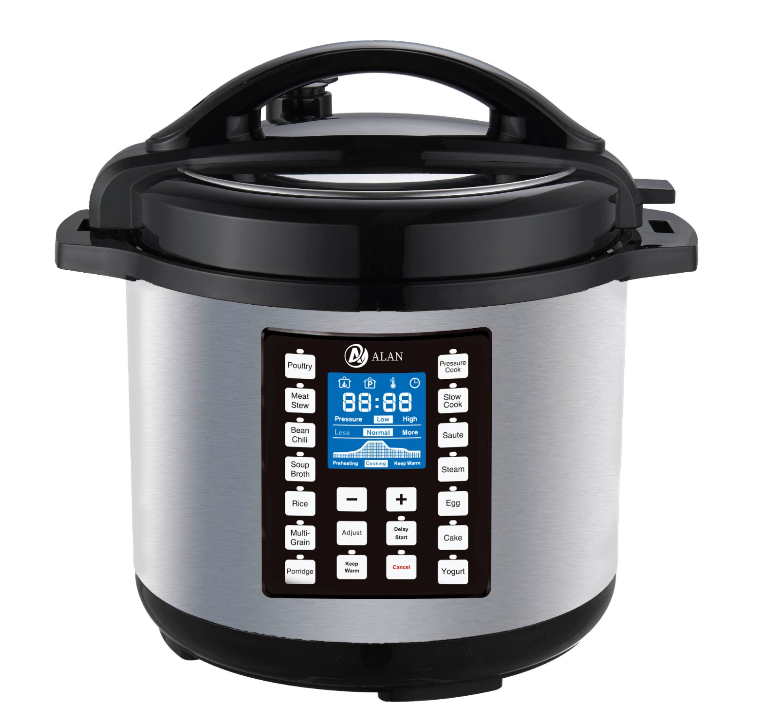 AL-S412LCD 4/5/6/8/10/12L Computer Electric Pressure Cooker, LCD Screen with Cooking Progress Indicator ◆ Voltage/Hz:220V~240V,50/60Hz ◆ Power:800/900/1000/1200/1600/1600W,0-70KPA ◆ Outer Housing:SS#201(Color Choice: Golden,Silver,Red,Purple,etc) ◆ Middle Housing:Cold Board ◆ Heater:380/430/430/660/1000/1000g ◆ Lid:SS#201 ◆ Inner Pot:Non-Stick Aluminium Pot ◆ 3*0.75*1.0M(4/6/8L) & 3*1*1.0M(10/12L)Pure Copper Cable with VDE Plug ◆ Accessories: Measure Cup, Spoon |