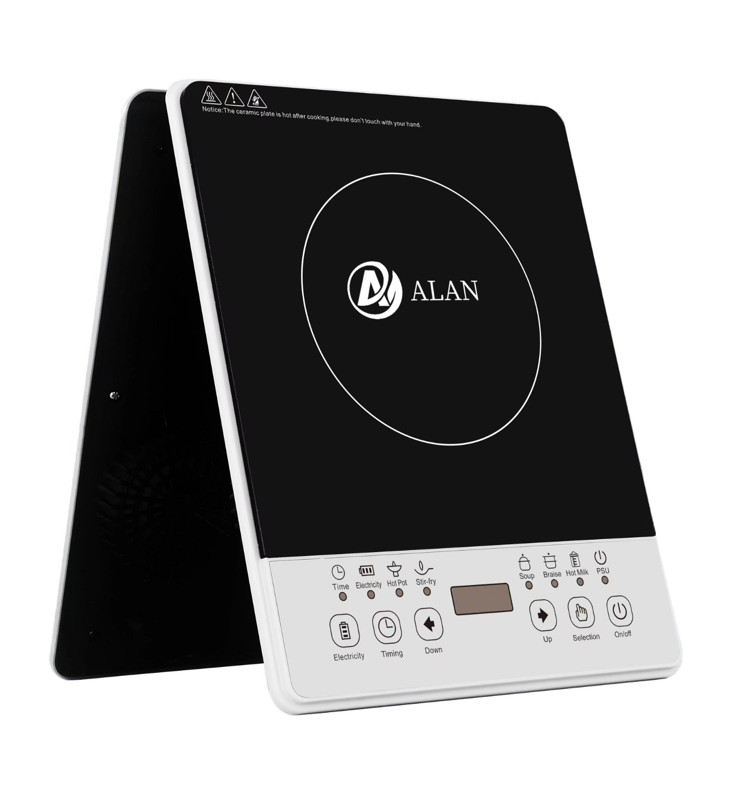 AL-Y11 New Developed Private Mould Ultra Slim Induction Cooker, Sensor Controller,4 Digital Display ◆ Voltage/Hz:220V~240V,50/60Hz ◆ Voltage Range:L88V~H280V ◆ Power 2200W ◆ Ceramic Plate 280*280mm ◆ Copper Coil ◆ High Quality PCB Board ◆ Housing Material:Plastic ◆ Product Size:360*280*38mm ◆ 6 Intelligent Cooking Function ◆ 8 Level temperature & Power adjustment ◆ Power & Temperature Indication ◆ Timer & Voltage Function ◆ Over Heat/Voltage/Current Protection ◆ 1.5m Copper Cable with VDE Plug |