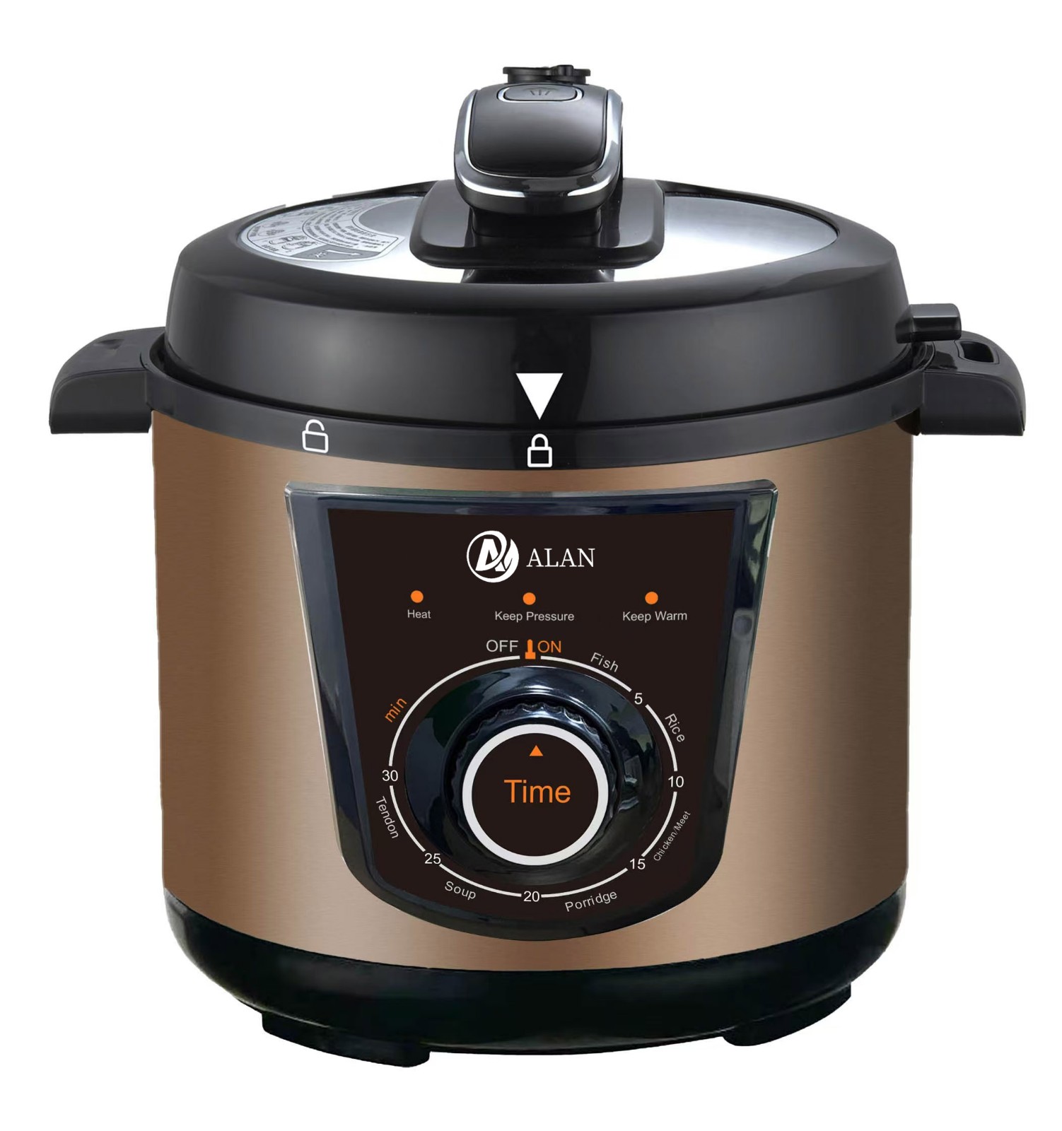 AL-SK05 5/6L Mechanical Model EPC ◆ Voltage/Hz:220V~240V,50/60Hz ◆ Power:900/1000W,0-70KPA ◆ Outer Housing: SS(Color Choice: Black,Red,Silver,Golden,Purple,etc) ◆ Middle Housing:Cold Board ◆ Heater:430g ◆ Lid:SS#201 ◆ Inner Pot:Non-Stick Aluminium Pot ◆ 3*0.75*1.0M Copper Cable with VDE Plug ◆ Accessories: Measure Cup, Spoon |